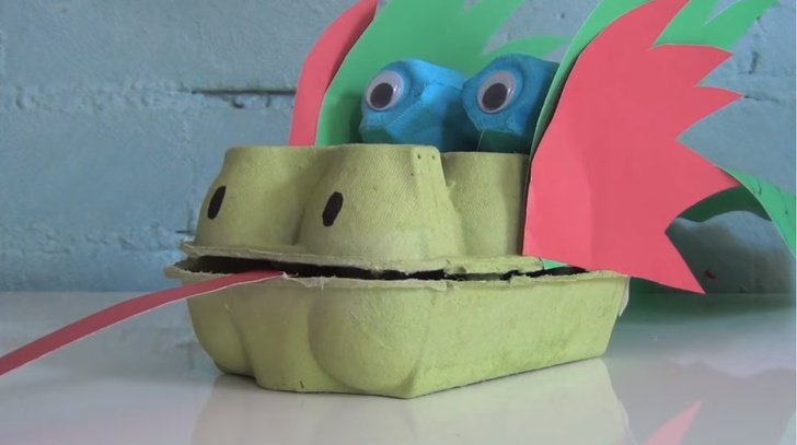 La idea original de recopilar esta serie de entradas de manualidad con hueveras es gracias a este dragoncillo lengudo que Sandra y Bruno publicaron su instagram lleno de imaginación!